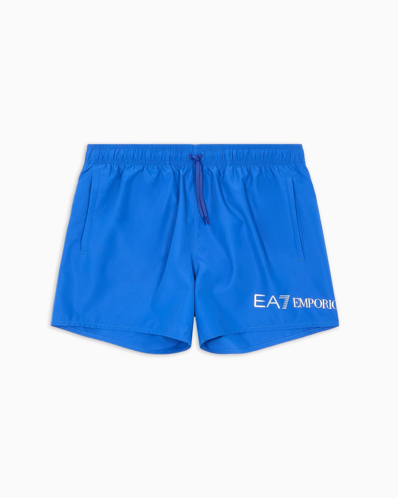 Costume da bagno modello boxer, declinato in colori versatili e facili da abbinare. Il modello presenta coulisse in vita, due tasche laterali e personalizzazione con logo EA7 a contrasto sulla gamba sinistra. Perfetto per la spiaggia e la piscina.